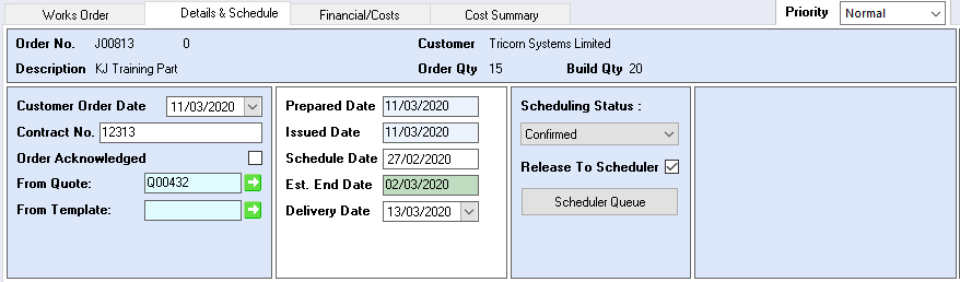Release to Scheduler – tick to release to the scheduler, this places the works order on the scheduler queue window