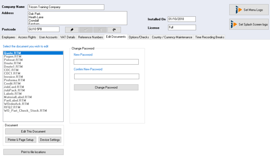 Within Tricorn there are printable documents that can be edited to customer requirements, please contact Tricorn Systems prior to changing any documentation.