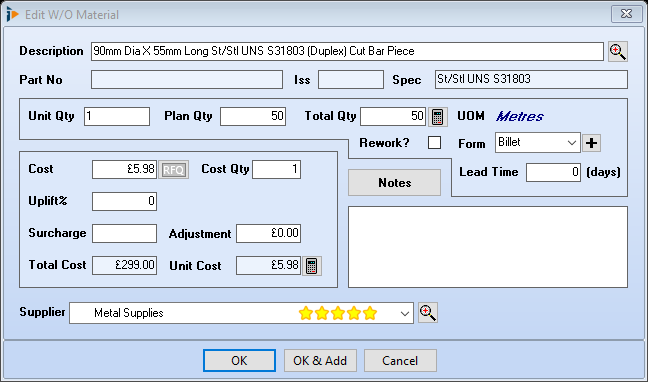 Works Order Material Window
