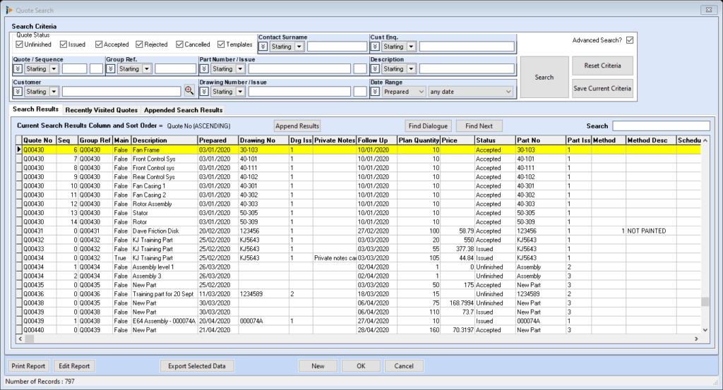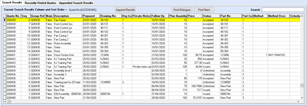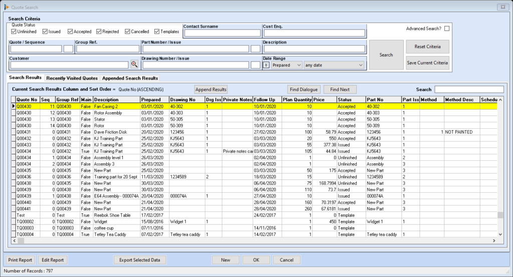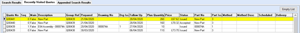 This table records all the quotes that have been opened enabling easy retrieval if required