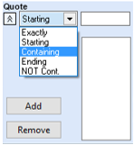 Use the drop down menu to filter using the criteria displayed, Exactly, Starting, Containing, Ending or NOT Cont. When the necessary criteria are displayed these too can be added to the box for more in depth retrieval.