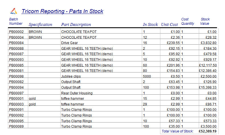 home/Knowledge Base/Tricorn/Static Data/Parts/Stock Report