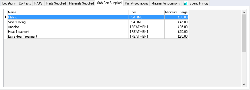 The sub con supplied subtab displays all subcontractor services this supplier supplies.