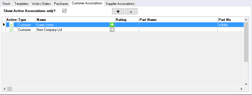 The supplier associations subtab is used to identify when a supplier has a different reference to standard. The Show Active Associations only? Can be ticked to filter those associations no longer applicable.