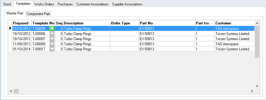 Templates for a part is split into two, Master and Component. If the part is used in the top level of a template it will be displayed within the Master Part subtab.