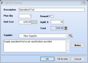 OK & Add – saves and opens tooling picking list