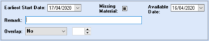 Available Date – linked to missing materials, a date can be set for when the materials can be available